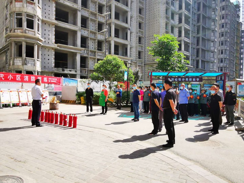 为了提高业主的消防安全意识,增强自救常识,保护业主生命财产安全,营造社区稳定良好的消防环境,5月25日,城投置业公司开展消防演练,物业工作人员、保安、保洁及业主代表共30余人参加。